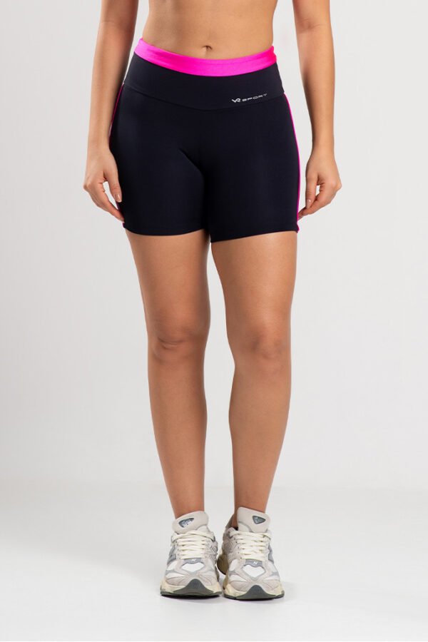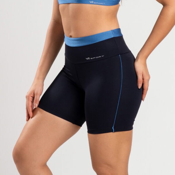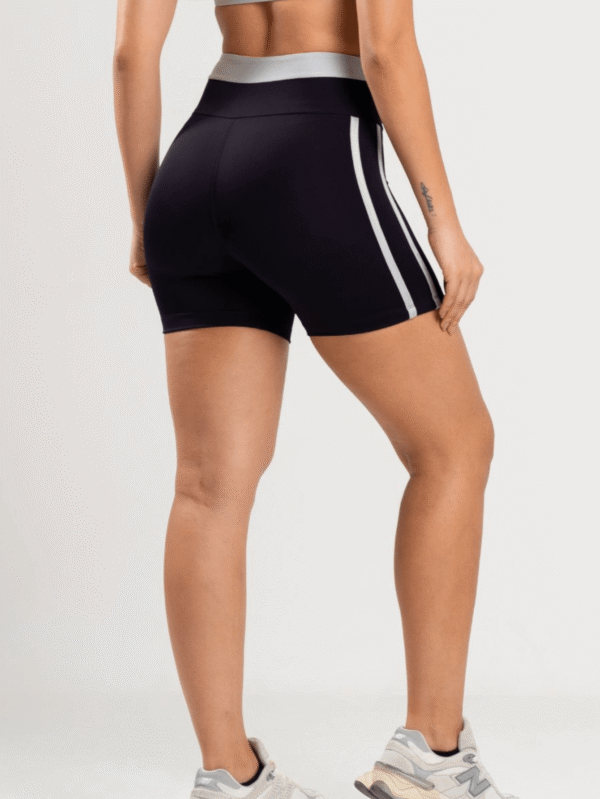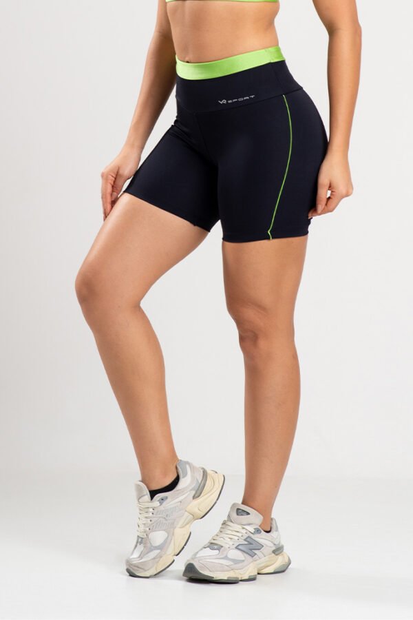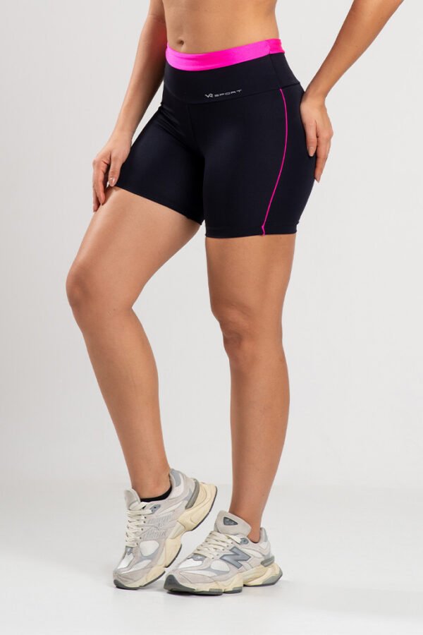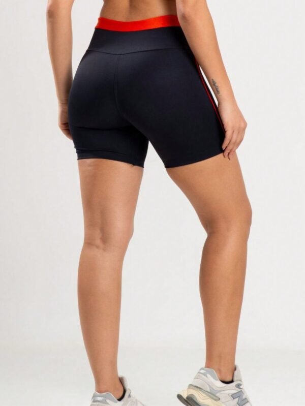 Short Fitness Preto com Recortes Glow Azul e Vermelho