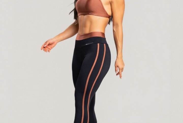 A Calça Legging Super Flare confeccionada em uma Poliamida especial com leve brilho, zero transparência.